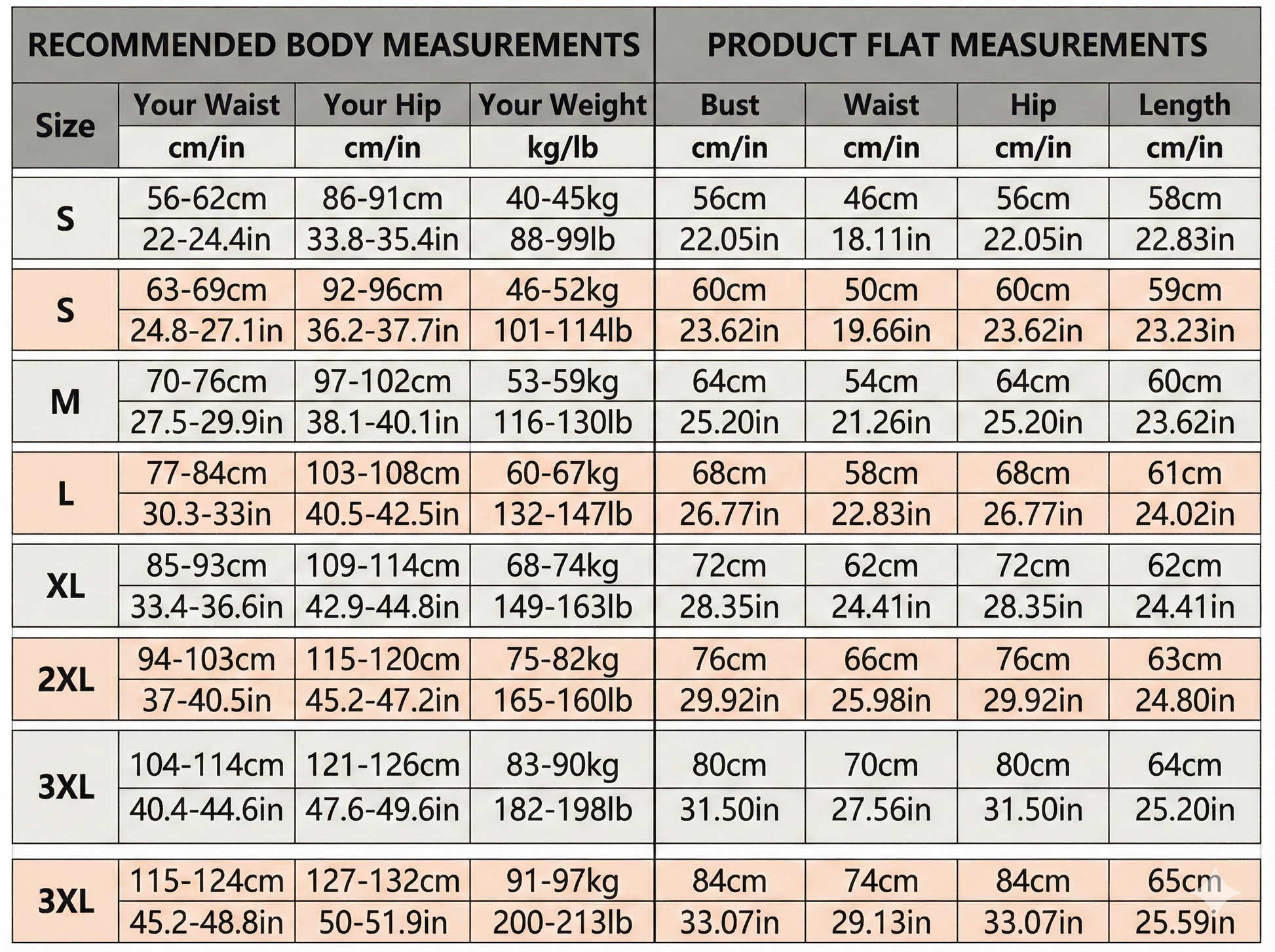 Check our size chart and order based on your current measurements, not the size you hope to be. If you're between sizes, size up for comfort. The bodysuit is designed to smooth and shape your natural figure, not squeeze you into a smaller size.